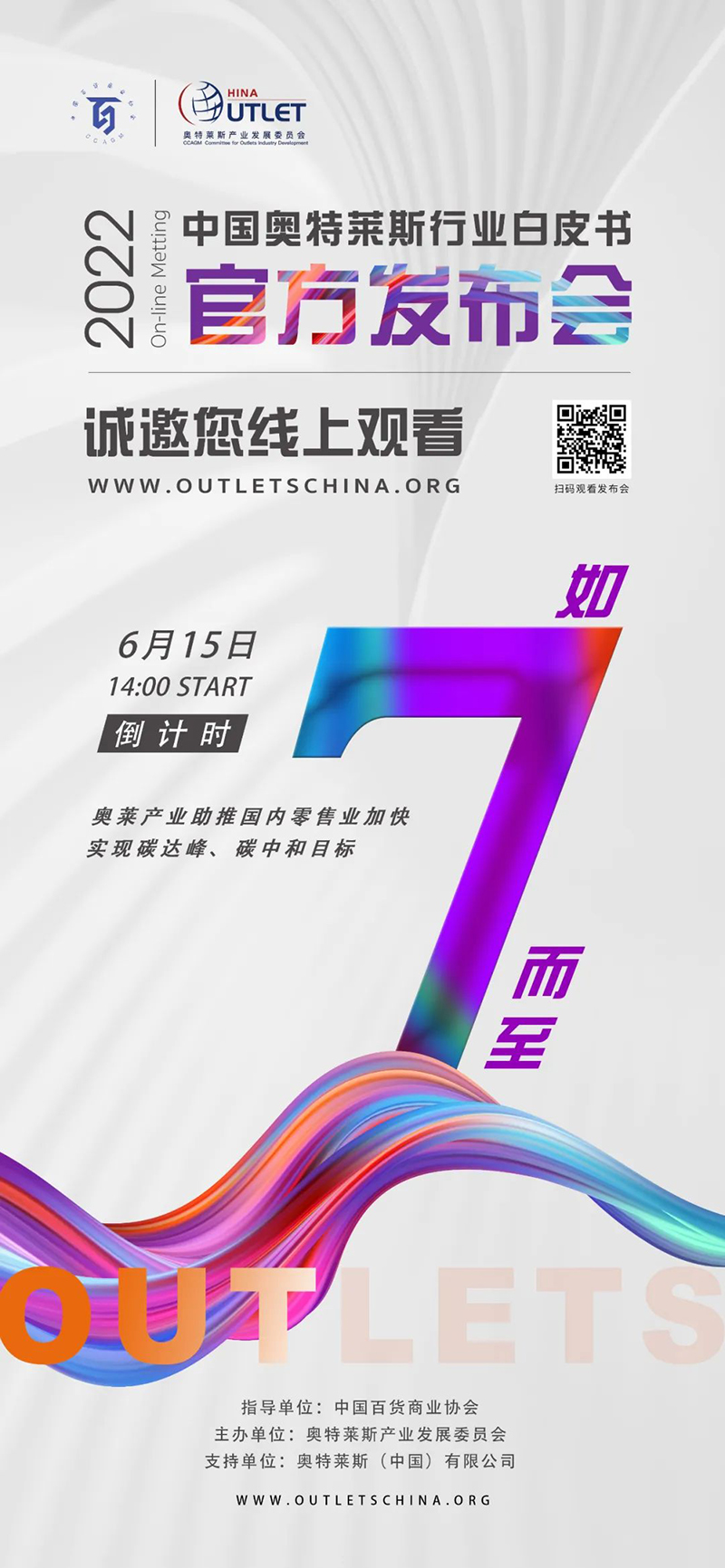 2022年6月15日14:00,《2022年中國奧特萊斯行業(yè)白皮書》線上發(fā)布會即將正式開始,本次發(fā)布會,將對國內(nèi)零售市場及奧萊產(chǎn)業(yè)引入中國20年發(fā)展的經(jīng)驗及機遇做出全新解讀。