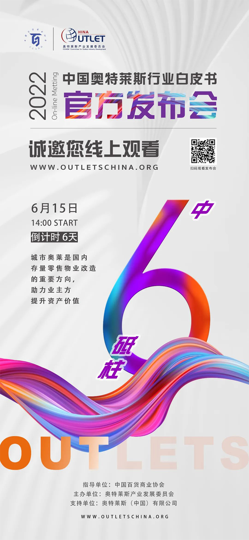 2022年6月15日14:00,《2022年中國(guó)奧特萊斯行業(yè)白皮書》線上發(fā)布會(huì)即將正式開始,本次發(fā)布會(huì),將對(duì)國(guó)內(nèi)零售市場(chǎng)及奧萊產(chǎn)業(yè)引入中國(guó)20年發(fā)展的經(jīng)驗(yàn)及機(jī)遇做出全新解讀。