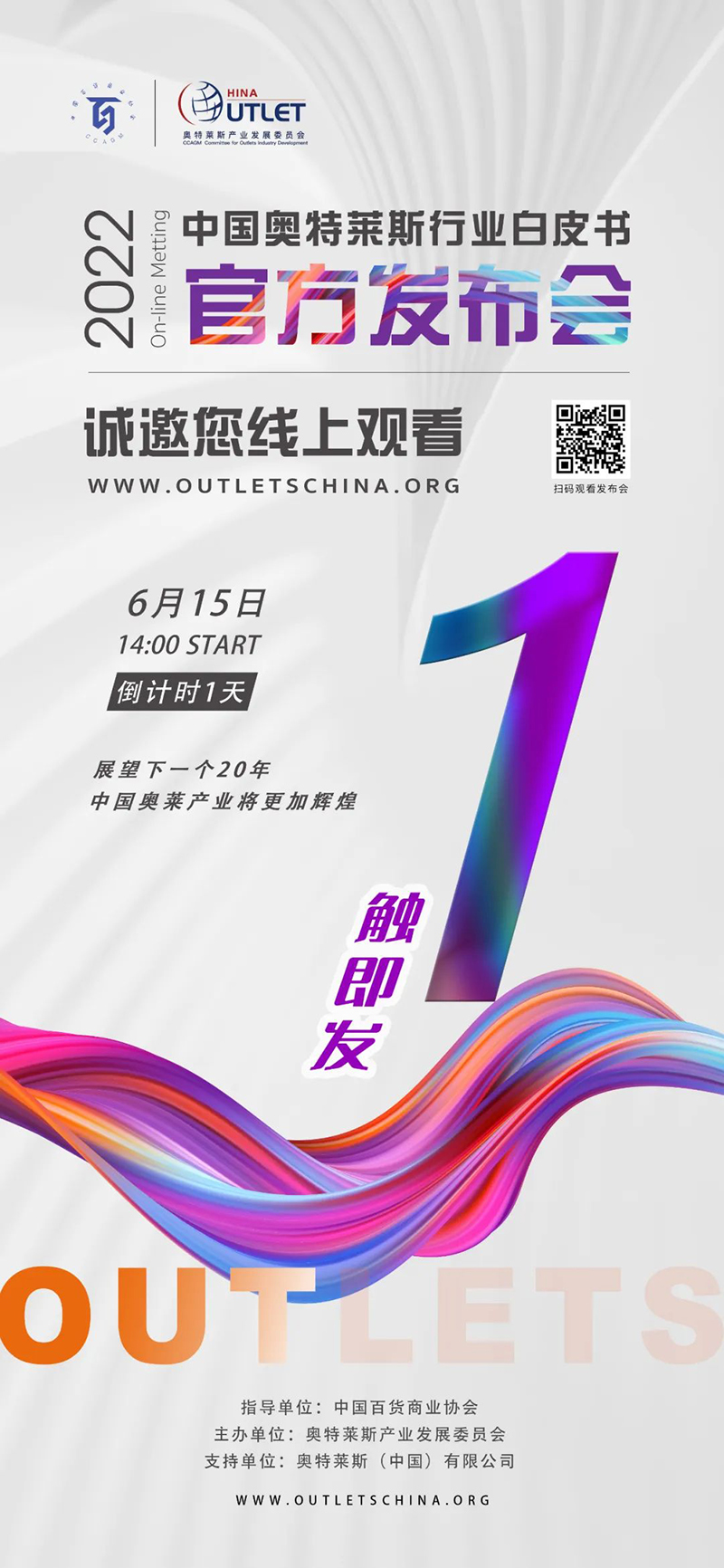 2022年6月15日14:00,《2022年中國奧特萊斯行業(yè)白皮書》線上發(fā)布會即將正式開始,本次發(fā)布會,將對國內(nèi)零售市場及奧萊產(chǎn)業(yè)引入中國20年發(fā)展的經(jīng)驗及機遇做出全新解讀。