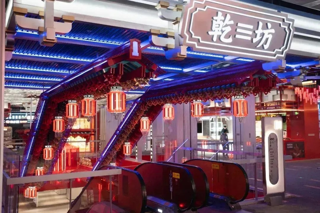 項(xiàng)目以“互創(chuàng)共生的主理人文化”、“越大膽越喜悅”為理念。場(chǎng)景上融合了日晷、榫卯、乾坤、八卦等中國(guó)文化元素與機(jī)甲、賽博朋克、元宇宙等新潮元素,項(xiàng)目在創(chuàng)新的同時(shí),又帶有鮮明的北京在地文化特色。圍繞藝術(shù)、文化和科技,引入知名IP聯(lián)展、二次元音樂(lè)人演唱會(huì)等特色活動(dòng),呈現(xiàn)出充滿張力的“次元專(zhuān)場(chǎng)”,旨在成為年輕人體驗(yàn)潮流文化的新地標(biāo)。