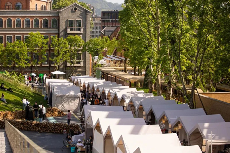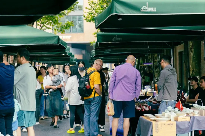 集市每周五、周六在街區(qū)廣場及主干道開市,占地9000平米,吸引數(shù)千名景漂創(chuàng)業(yè)青年參與,每月進(jìn)行報(bào)名和重新篩選。