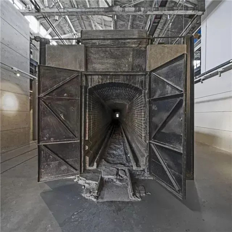 巨大的陶瓷燒煉車間建于1956年,是景德鎮(zhèn)宇宙瓷廠的主車間。廠房內(nèi)保留了古老的圓窯、1960年代的煤燒隧道窯和1990年代的汽燒隧道窯,這三種時(shí)期的窯爐不是得到簡單的保留,而是用它們組織了整個(gè)博物館的游覽路線。