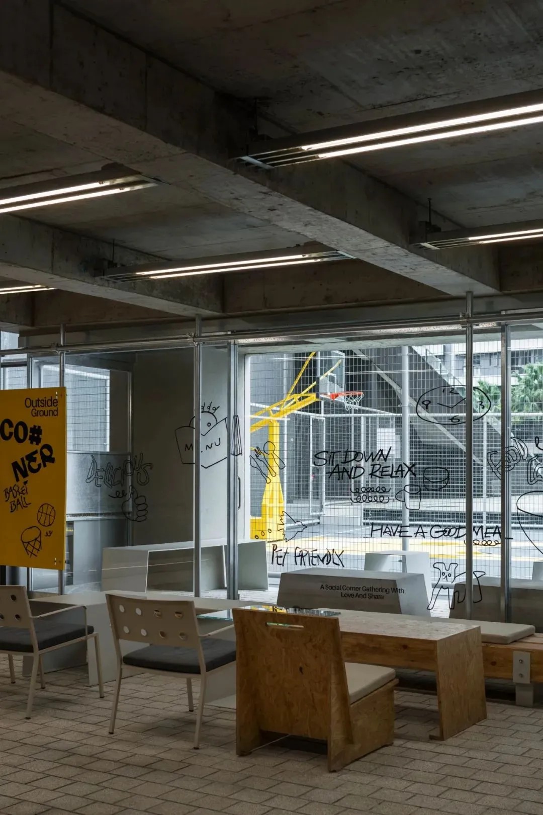 CO#NER食堂,以禁欲系冷淡風為主旋律,設計上承襲了極致輕工業(yè)的時尚美學,細膩而不失格調(diào)。其獨特的售賣模式圍繞模塊化“檔口”展開,融合POP UP快閃店概念,營造出既持續(xù)又多變的用餐氛圍,旨在為顧客解鎖無限可能的美食探索之旅。空間內(nèi),水泥原色與暖木色家具巧妙碰撞,輔以生動活潑的簡筆插畫,色彩斑斕間傳遞出溫馨舒適的放松信號,讓人在享受美食的同時,也能感受到心靈的慰藉。