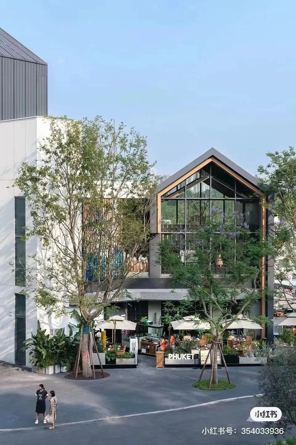 街道旁的建筑采用了大面積落地窗設計,讓室外的綠意與光線無縫融入室內(nèi)空間,營造出一種開闊而明亮的氛圍,使人心曠神怡,毫無拘束之感。