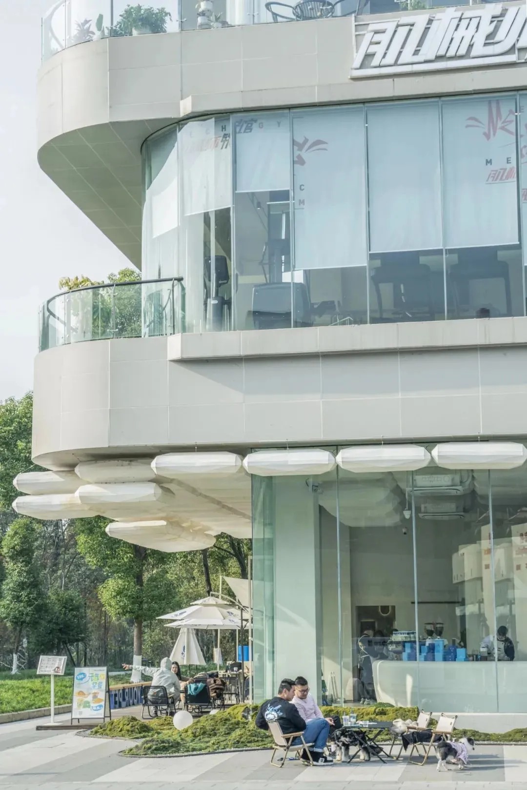 此地匯聚了眾多成都本土標志性品牌,每一家都深深烙印著成都獨有的文化韻味。采用黑白灰的色調(diào)設計,不僅加深了空間的純粹質(zhì)感與深遠意境,更巧妙凸顯了入駐品牌的鮮明個性,共同編織了一幅“空間為幕,品牌為戲”的視覺敘事畫卷。它們相互輝映,彼此成就,徹底顛覆了傳統(tǒng)市政公園的單一形象,將其華麗轉(zhuǎn)身為集文化熏陶、藝術享受與休閑放松于一體的多元化復合空間。