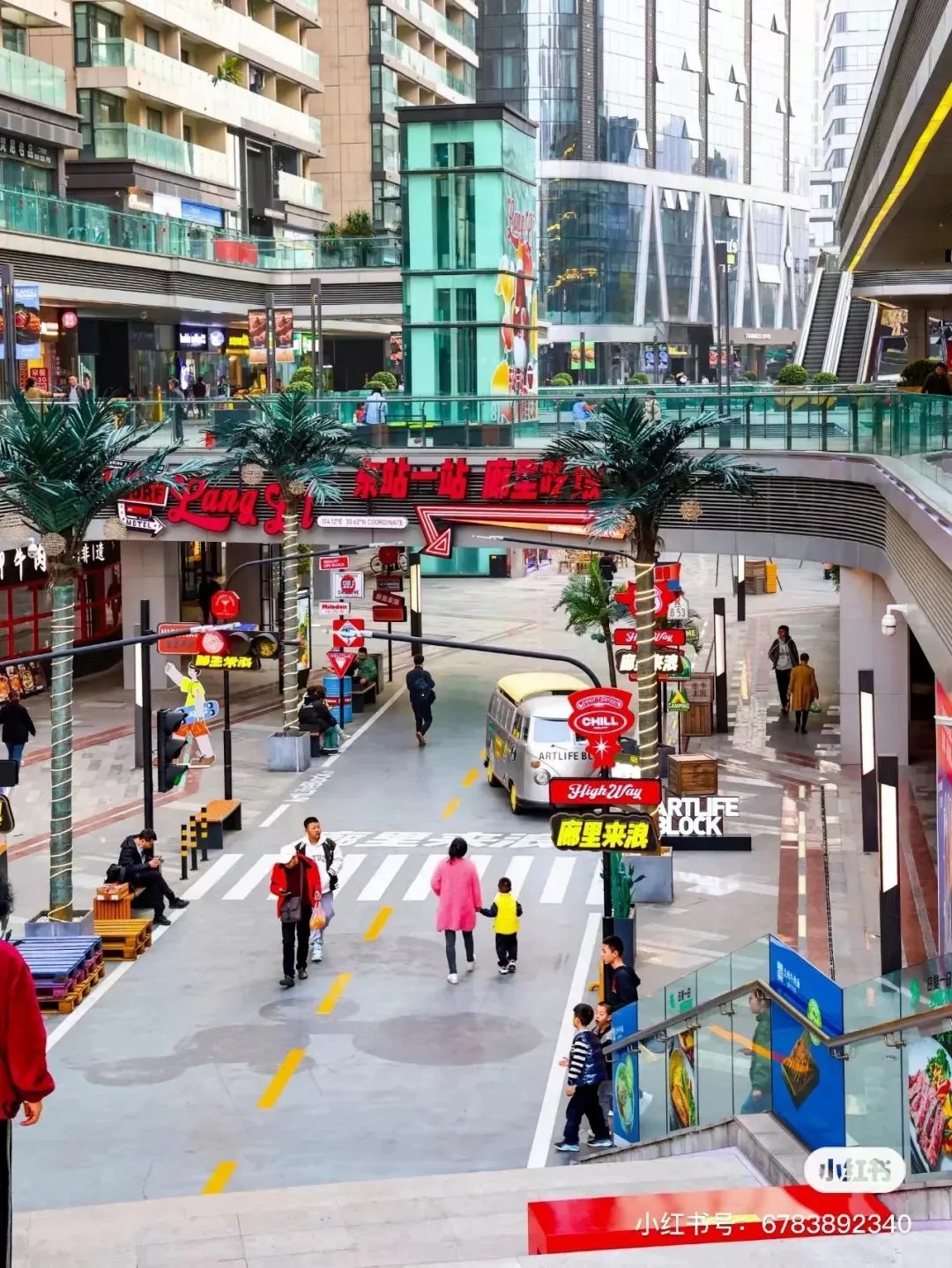 街區(qū)核心的下沉式廣場,匠心獨運,以美式公路風情為藍本,巧妙融合異域風韻與休閑度假氣息,不僅設計獨樹一幟,更成攝影打卡新寵,讓人仿佛穿越時空,瞬間切換場景,領略多元文化的魅力。此舉不僅巧妙解決了傳統(tǒng)商業(yè)下沉空間引流之困,更為其注入了勃勃生機與無限可能。