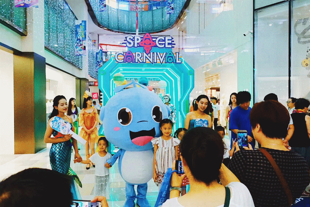對(duì)于城市而言,天津作為海濱城市,海洋元素的小鯨魚(yú)IP衍生也是在地文化內(nèi)容發(fā)酵的重要一環(huán)。原創(chuàng)主題IP“鯨仔”作為天津第一個(gè)購(gòu)物中心主題IP,擬人化形象助力品牌傳播,通過(guò)鯨仔IP的逐步成長(zhǎng),在地文化也將植入這種符號(hào)化、人格化的形象,塑造了多場(chǎng)商業(yè)美陳、平面延展、在線客服、抖音網(wǎng)紅、巡游快閃等活動(dòng),把商業(yè)和精神消費(fèi)相融合,快速匯聚人氣,打開(kāi)城市發(fā)展的認(rèn)知度、文化力和性格定位。