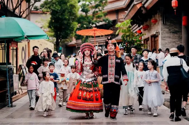 據(jù)悉,“阿詩夢(mèng)”產(chǎn)品線以云南特色民族民間文化為核心,旨在為外地游客提供沉浸式體驗(yàn)。在場(chǎng)景創(chuàng)新層面,滇池后海打造了具有云南民族特色的街區(qū),如白族三坊一照壁、傣族竹樓、苗族風(fēng)雨橋等,還定期舉行民族舞蹈、音樂表演。與此同時(shí),項(xiàng)目通過與當(dāng)?shù)厮囆g(shù)家、設(shè)計(jì)師的合作,推出了一系列具有云南特色的文創(chuàng)產(chǎn)品,如千言李白原創(chuàng)IP系列產(chǎn)品、非遺瓦貓等。在科技應(yīng)用上,項(xiàng)目也不斷探索和創(chuàng)新。通過引入會(huì)員系統(tǒng)、客流監(jiān)控系統(tǒng)、移動(dòng)支付、在線預(yù)訂等科技手段,提高了商業(yè)街區(qū)的運(yùn)營(yíng)效率和游客的消費(fèi)體驗(yàn)。