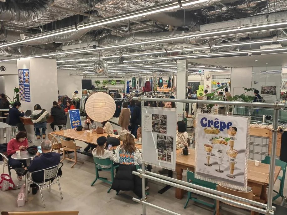 在東京的一座Tokyu Plaza中,就見到其舍棄半層經(jīng)營(yíng)面積,打造出公共休閑空間。當(dāng)然,所謂“舍棄”也并非完全屏蔽零售商品售賣,只是有取舍地將更能豐富消費(fèi)者游逛體驗(yàn)的特定零售品類包羅其中。這些商品或品牌的陳列更像是美陳道具,沒有出跳的展柜與收銀臺(tái),總能讓進(jìn)場(chǎng)顧客在不經(jīng)意間隨手拿起挑選。