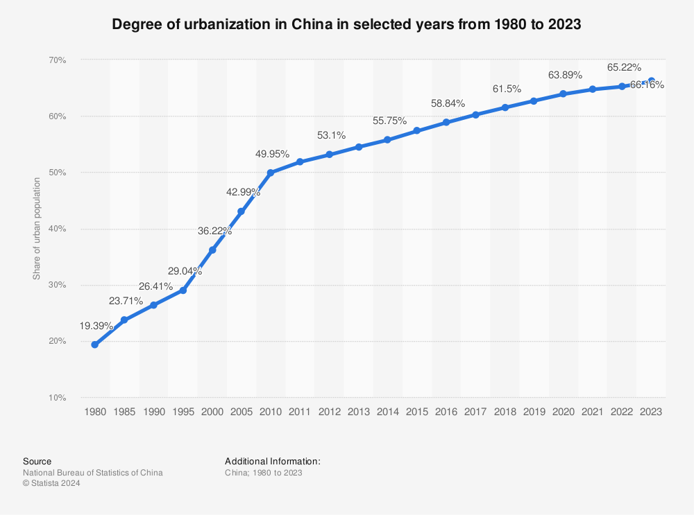 報(bào)告中顯示,2023年末,我國城鎮(zhèn)常住人口已經(jīng)達(dá)到了9.3億,城鎮(zhèn)化率66.16%,即,每三個中國人中,有兩個生活在城市里。此外,我國地級以上城市常住人口達(dá)到6.7億人,常住人口超過500萬的城市有29個。