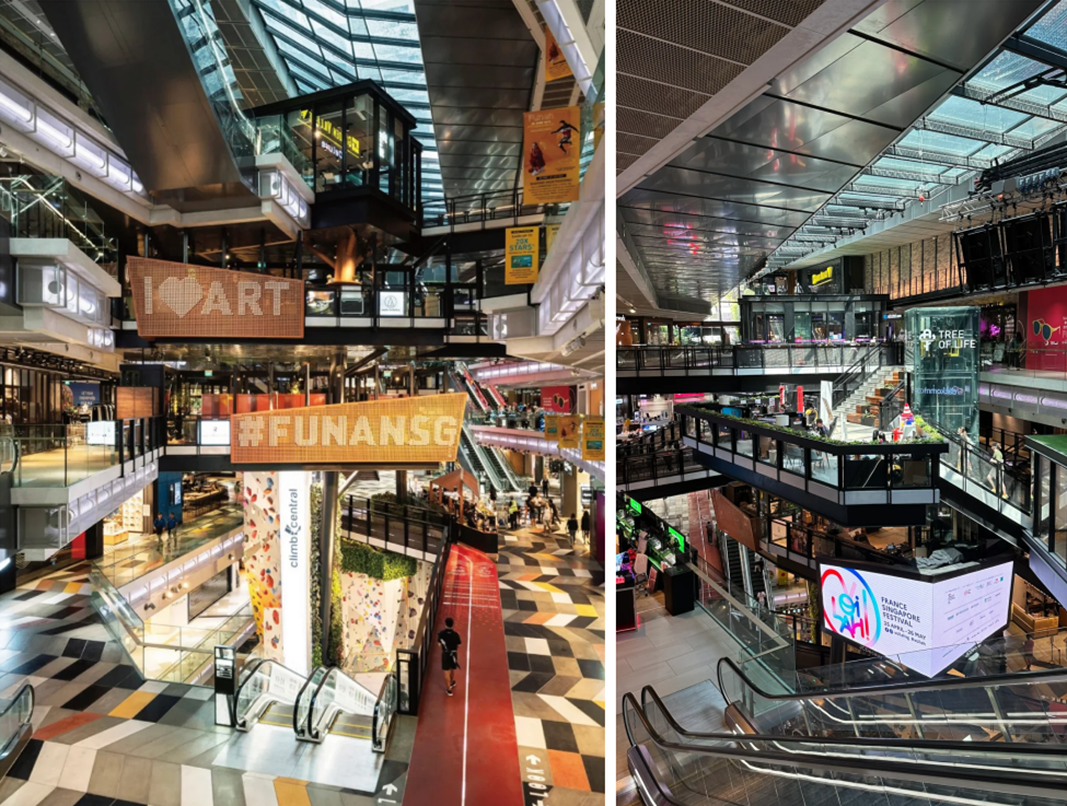 ◎前身是數(shù)碼商城的新加坡FUNAN,以錯(cuò)落的樓梯,突破了傳統(tǒng)商業(yè)體乏味的水平動(dòng)線,增添空間的趣味性,還切割出了大量公共區(qū)域,設(shè)置200米橫穿室內(nèi)的自行車道,打造成為新加坡首個(gè)騎行友好商場。