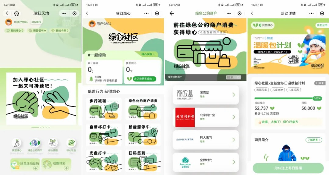 再比如,上海新天地開發(fā)上線了消費者“綠心”會員碳賬戶,在線下結(jié)合綠色餐廳大賞活動,推廣有機低碳的餐飲經(jīng)營。“綠心社區(qū)”的上線為商業(yè)與消費者之間搭建了一條綠色的通道,令可持續(xù)行為可積累、可觸達、可量化、可兌換,培養(yǎng)消費者從意識、認知到生活方式邁向綠色的轉(zhuǎn)變。