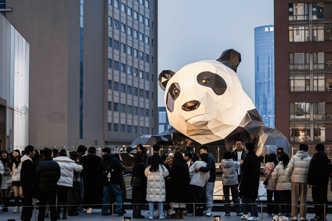 成都IFS的大熊貓“I AM HERE”,以幽默的“爬墻”姿勢呈現(xiàn)于林立高樓之間,已經(jīng)成為極具項目辨識度甚至城市名片式的獨家地標。這個大熊貓藝術(shù)裝置不僅深受本地公眾和國內(nèi)外游客喜愛,還成為眾多明星名流必到訪的打卡之地,在社交媒體平臺上熱度居高不下,吸引了大量游客前來打卡,為成都IFS帶來了巨大的流量和品牌曝光。更贏得來自行業(yè)的國際認可,斬獲亞洲公關(guān)大獎“最佳品牌策劃”金獎。