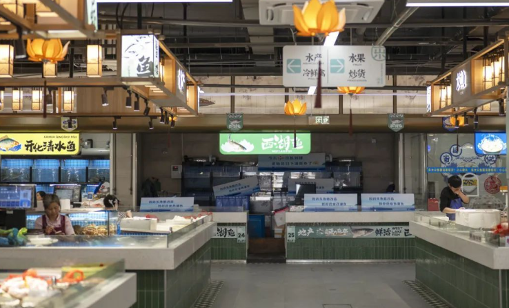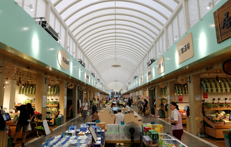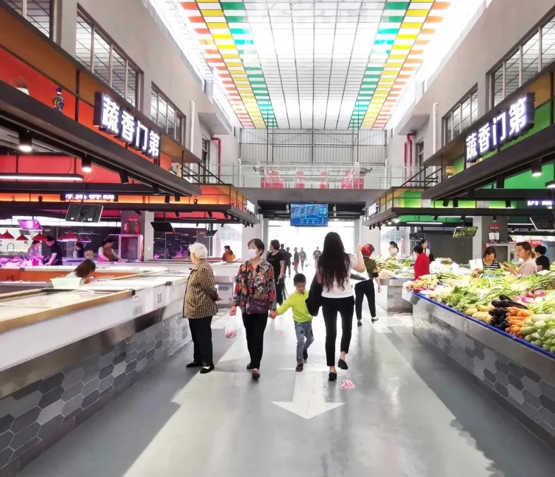 改造后的福明菜場對空間進行了重新規(guī)劃,設置了蔬菜、水果、肉類、海鮮、禽蛋、豆制品、熟食等不同的功能區(qū)域。除了傳統(tǒng)的農產品攤位外,福明菜場還引入了許多特色業(yè)態(tài)。如增加了鮮花店、烘焙坊、小吃店、便利店等,滿足了消費者在購物過程中的多樣化需求。同時,還設置了一些品牌農產品專賣店,提供高品質的特色農產品,提升了菜場的檔次。