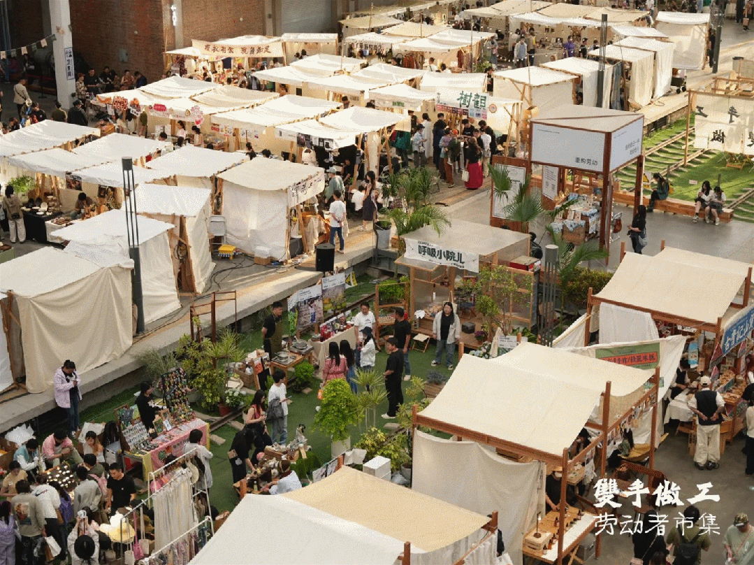 除了戲劇演出,上生·新所公共空間五一期間也舉辦了以“松弛療愈”為主題的手作市集活動,60+原創(chuàng)設(shè)計攤主為大家?guī)硪粓龇淳懑熡凳屑蚴忻裼慰蛡鬟f各自的“慢生活”哲學,讓我們找到都市煙火氣、找到人與人單純善意的社交,讓藝術(shù)浸潤生活,成為城市文化能量的聚集地。