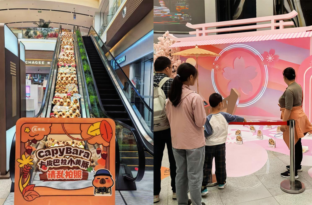 龍玥城自開業(yè)以來根植“悅己主義”持續(xù)打造有趣的沉浸式互動體驗活動,今年五一期間更開啟了一場玩趣生活嘉年華,從潮流IP打卡到科普研學,從傳統(tǒng)游戲到驚險表演,精準覆蓋消費者多元化需求。卡皮巴拉小黃豚電梯瀑布快閃活動設(shè)置了一整個電梯的潮流IP卡皮巴拉小黃豚,結(jié)合皮巴拉主題的立牌套圈游戲,吸引眾多消費者前來打卡。